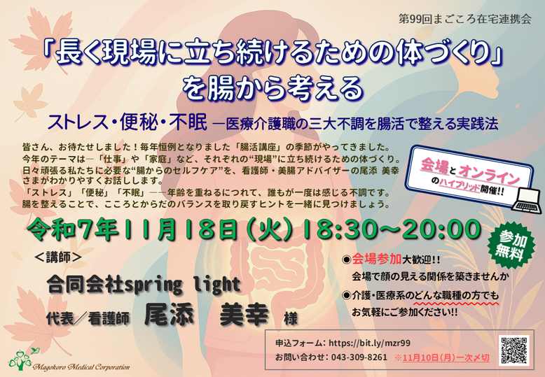 皆さんお待ちかね!毎年恒例の「腸活講座」の季節がやってきました。